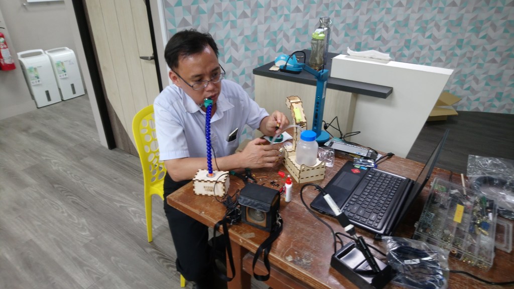 5月23日辦理了自動酒精噴灑器的研習,整整六小時的課程,事前準備材料準備了兩週,先是用雷雕機雷切了20份的木板材料,3D列印了三項小零件,並且採買了20份的材料,研習前一天還為了課程更順利,還特地把所有的材料包成一袋袋,放在桌上。隔天講師來又補上了四五巷的材料,才終於準備完事前的所有準備。