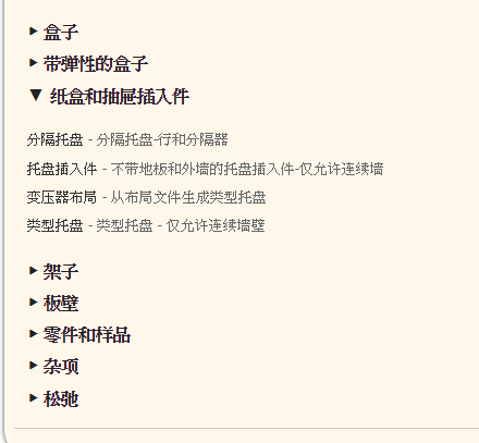 我們先照著網站上的示意圖在「紙盒和抽屜插入件分類」,在找上了「變壓器布局」的盒子類型。