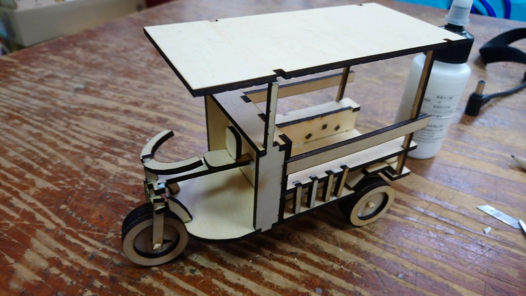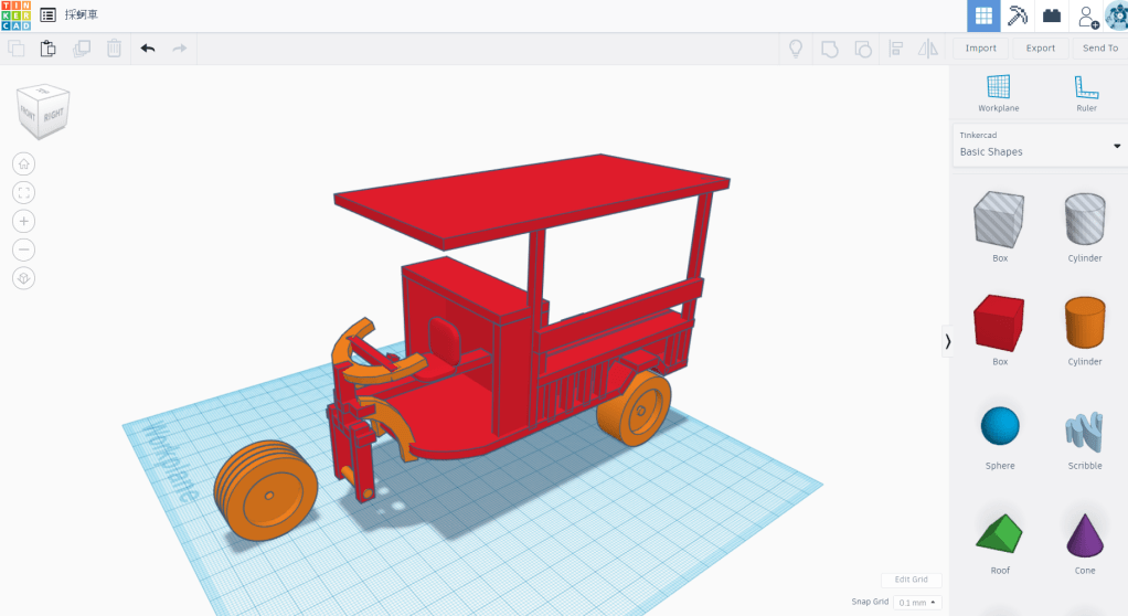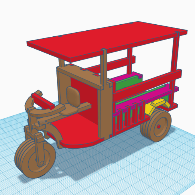 前陣子參加一個課程,聽到講者說文創的產業都沒有跟在地做結合,全台灣觀光景點買到的東西都大同小異,越來越沒特色,當下聽到就馬上跟我的主任隨口說了,不然我們來做個雷雕採蚵車吧(彰化王功的旅遊特色)。本來也只是隨口說說,但過了幾天想了想,只是說說什麼時候才要實現呢,要不就現在立刻動手做吧。就開始了採蚵車雷雕模型的設計,這次一樣是使用Tinkercad來做設計。