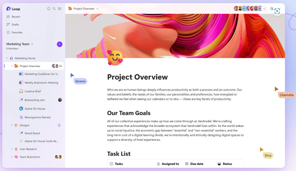 去年宣傳的畫面中就有同時多人協作的示意影片,還可以如同畫布般即時看到大家的滑鼠目前編輯的位置,稍微有瞄到一眼疑似可以單一App 同一頁面開啟excel、word等功能,如果真的能完美結合,應該會讓小編想要從目前的Notion筆記軟體轉移過來,不過詳細的功能還是得等正式發布上線,能體驗到的才是真的啦!