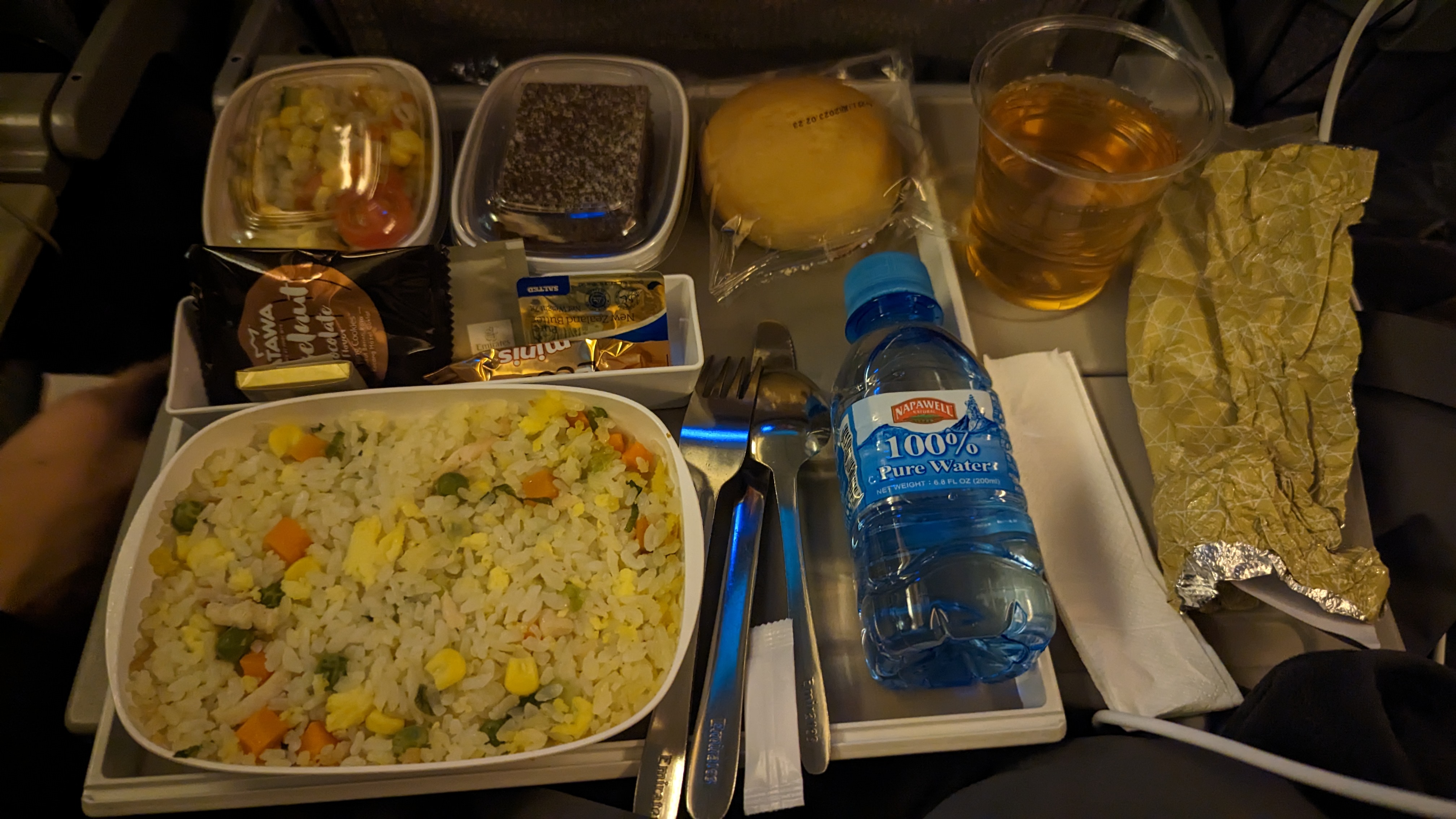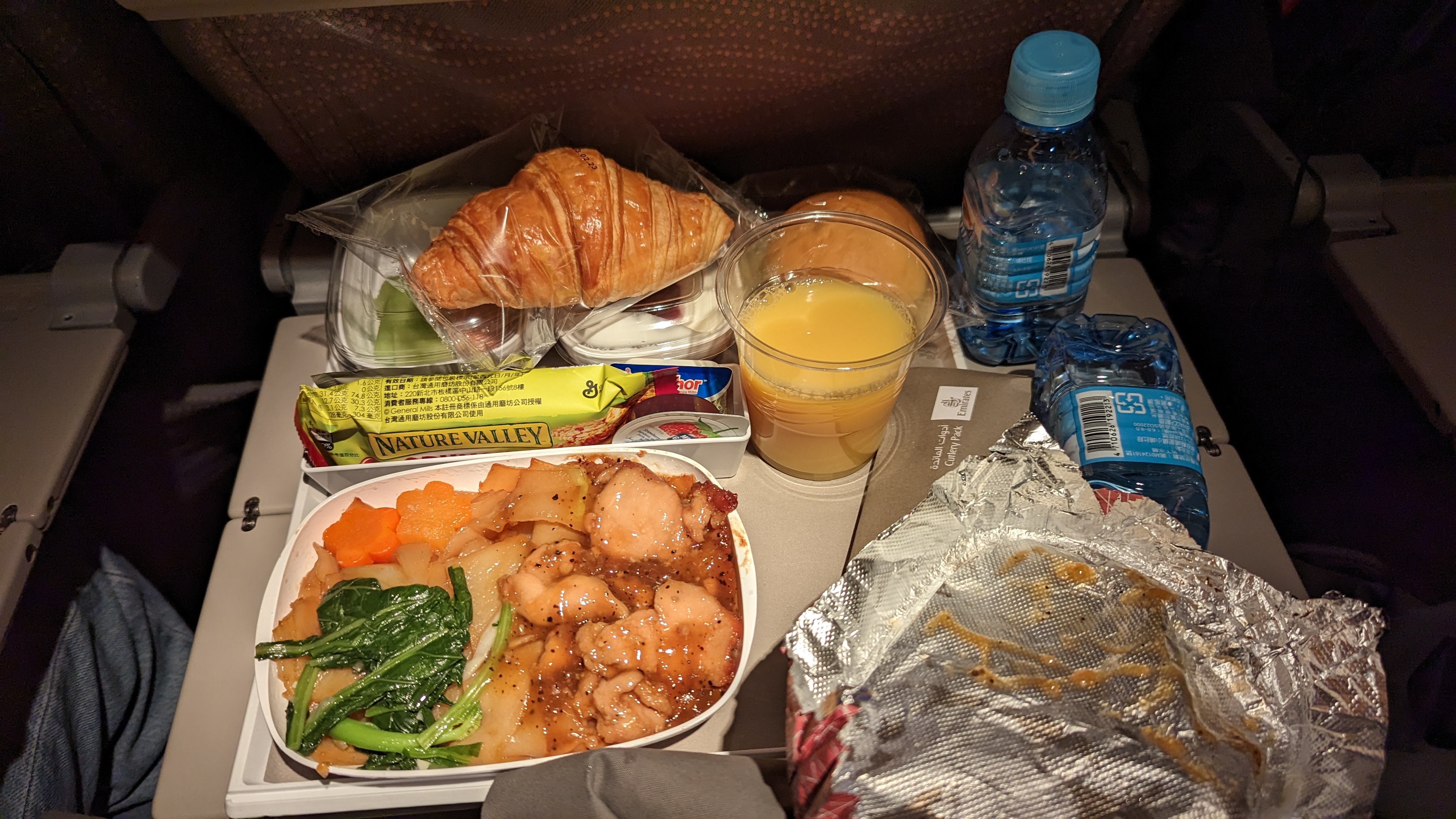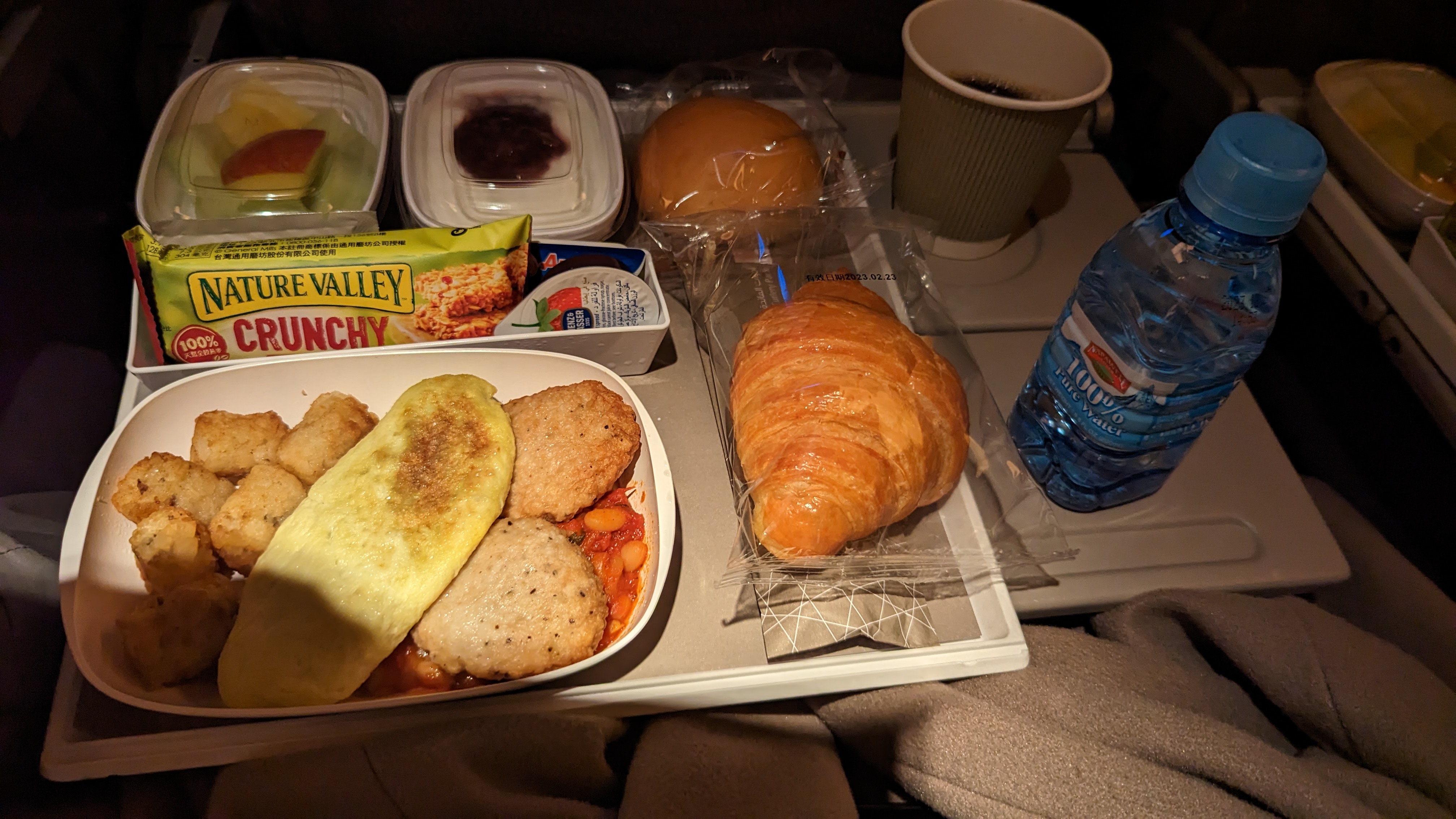 附上幾餐有拍到的機上伙食,兩人坐一起的好處就是可以吃兩份不同餐點。