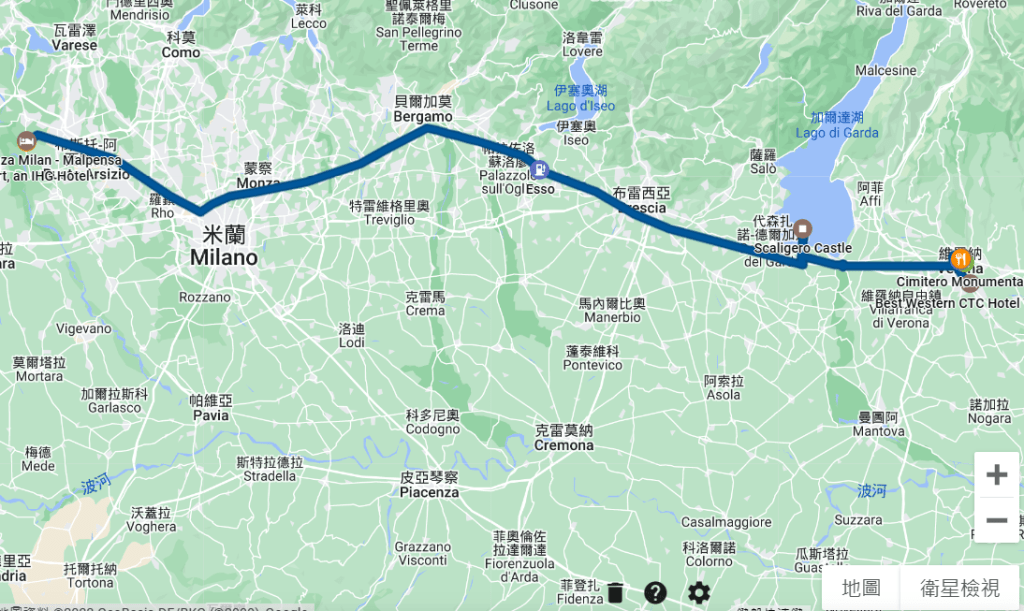 早上08:30集合,從米蘭出發到加達湖,車程約2.5小時,加達湖自由時間約1小時,午餐用畢後,搭車約50分至維諾娜,導覽完畢後,自由時間約2小時半,步行至晚餐餐廳用餐,再坐車20分鐘回飯店。