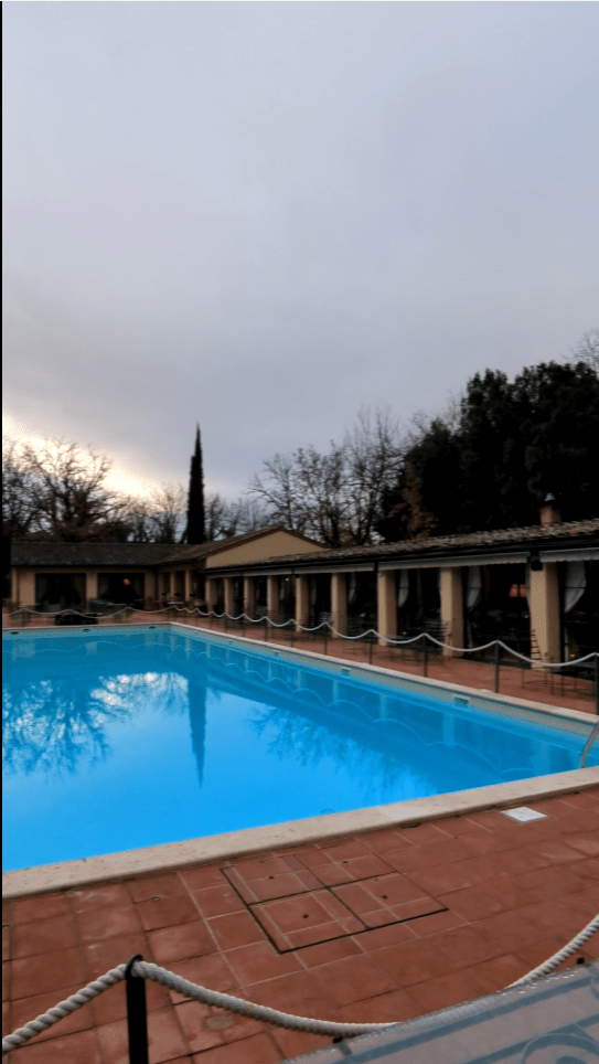午餐過後大概坐車四個小時前往莊園旅館,中間有短暫停留大的休息站讓我們去超市採買。飯店位於托斯卡尼地區深山的莊園,週邊荒蕪沒有得逛,房間在三樓,有個高大的服務員(至少200cm)直接提起兩個29吋行李箱,臉不紅氣不喘要我們跟著他走,我忍不住直接稱讚他力氣很驚人,他一副小case的樣子,如果有幫提行李服務,領隊也會提醒記得要給小費。