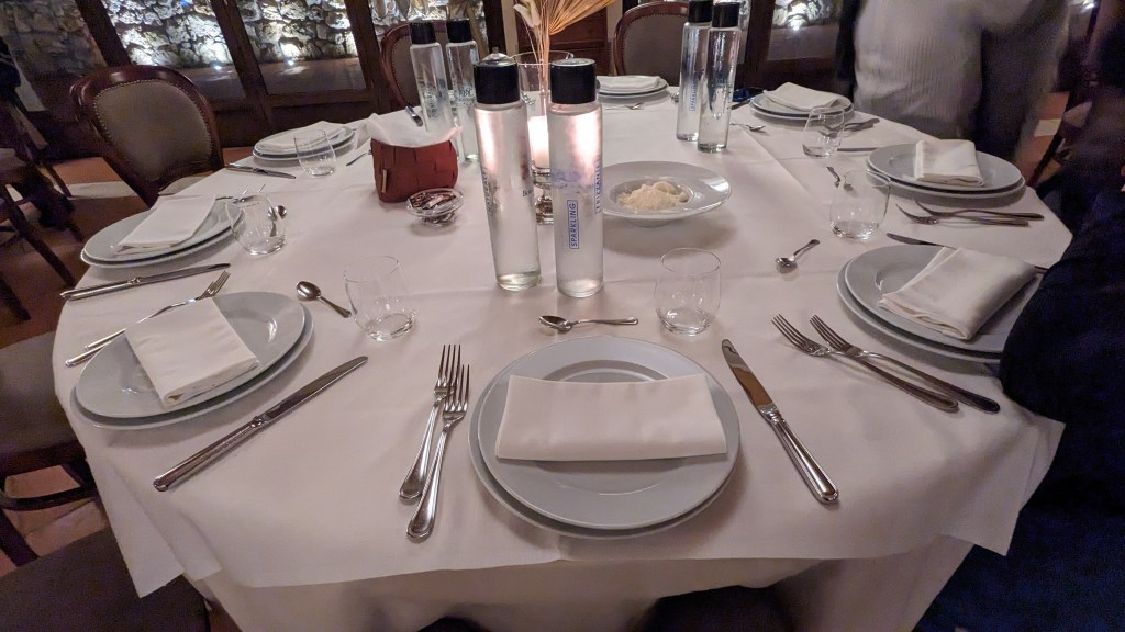 我們要先澄清一件事情,這餐的餐廳老實說我們沒有記得是哪間,是後來靠google訂位紀錄以及查看照片發現擺盤跟杯具一致才確定的。
