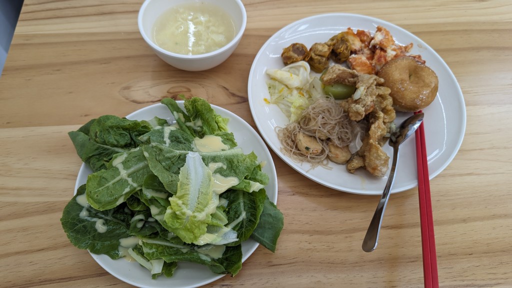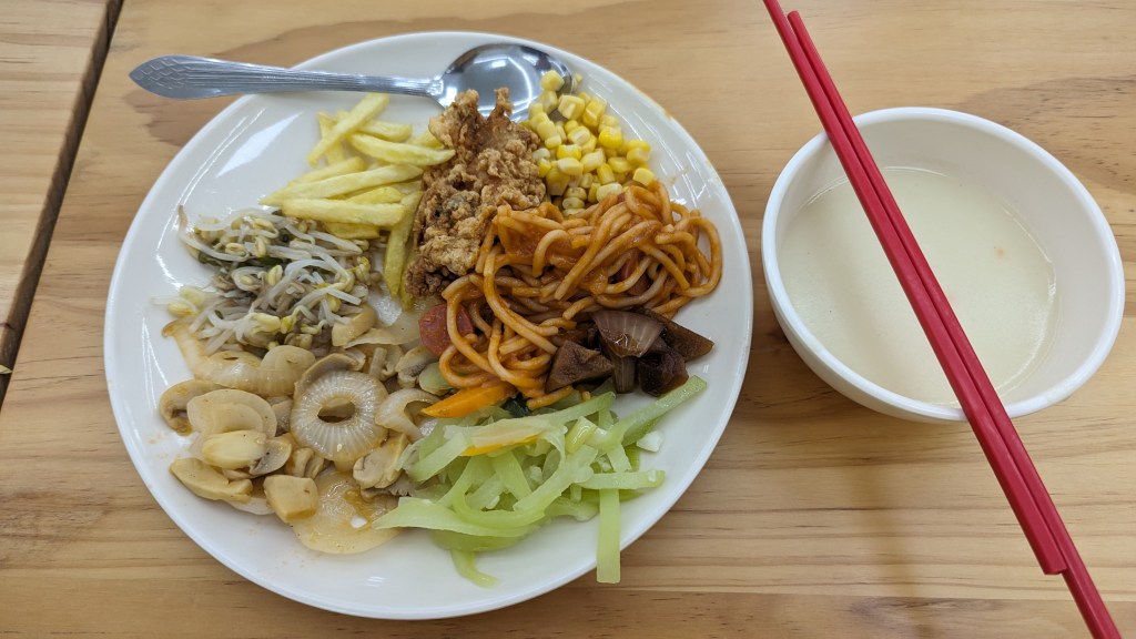 提到飲食部分,也要稱讚我們學校的學餐,因為是韓資學校,有一區韓國泡菜區,麵包區、生菜區、午晚餐肉類至少兩種、削好的水果兩種、主食兩種(有時會有義大利麵、炒麵或披薩)、菜色至少兩種、三種飲料和一種湯;早餐也有保久乳、麥片、麵包、粥飯水果類,雖然菜色變化不高,但比七年前他們的youtube菜色好多了,調味比台灣自助餐清淡,廚房餐廳環境也乾淨整潔,不能說有多好吃,有時還有沒炸熟的肉,偶爾會拉肚子,但比正統菲律賓菜來說,相對好適應,加上花了許多錢在學費上,所以每餐都用盡生命狂吃,也因為吃得健康,回台灣後反而瘦了三公斤。