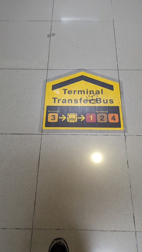 因為我的班機還有約三個小時,也擔心出站可能會有人身安全問題(被菲律賓老師們恐嚇怕了XD),最後選擇站內轉乘公車。跟著指標找了一陣子,終於找到轉乘公車的位置,過程中還有些指標不是很明確,指示方向同時有兩三條路,探索後終於找到正確的位置。進到轉運等候區前需要再過一次安檢(畢竟是站內轉乘,可能是怕有人劫持公車去衝撞飛機吧?),安檢前會先檢查一次機票,確認是搭機的旅客。