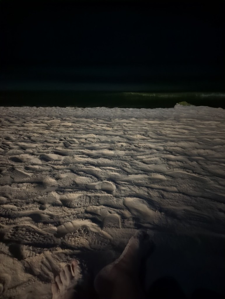 東西都整理好後,我自己獨自又出來沙灘走了半小時,老婆就留在,夜晚星空很美,嘗試用手機拍了幾張效果甚差,就不拍了繼續附近走走。晚上的沙灘少了人群紛擾後格外安靜,聽著海浪的聲音踩著沙灘並將雙腳泡在海水中很舒適。