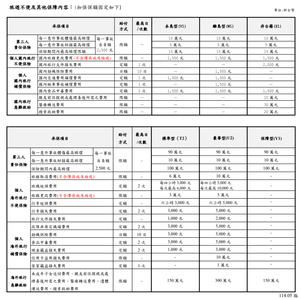 另外信用卡如果機票全額刷卡,也會有另外的平安險跟不便險,只是金額通常較低。