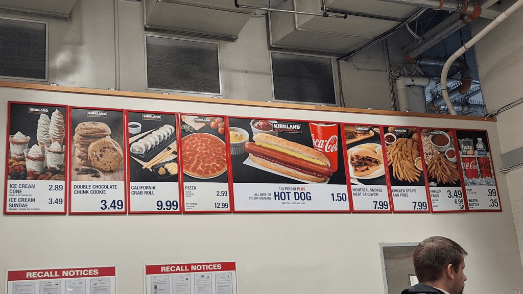 距離住宿步行約10分鐘,北美的好市多跟台灣長得差不多,熟食區看不到炒飯、麻油雞這種東西,多是壽司、沙拉冷食(講什麼廢話???)。熱食部只有一小區,可使用自助機器點餐,價格跟外面餐廳比確實非常便宜,熱狗只要1.5元加幣(約台幣33元)還附飲料、洋蔥吃到飽,網路上不少人抱怨街友會在這用餐逗留而有治安疑慮,這附近有體育館,晚上沒有什麼人且死角很多,太晚的話不建議步行來購物。後來我們買了一片pizza作為隔天早餐,口味份量跟台灣的差異不大。