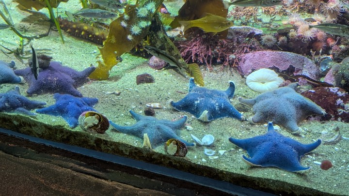 最後離開前去了地下室的展館,這邊可以直接看到水底生物們的作息,也有椅子可以稍作休息,只是覺得對海獅/狗/豹們(抱歉我們沒有弄懂過)來說這水族箱似乎太小了。
