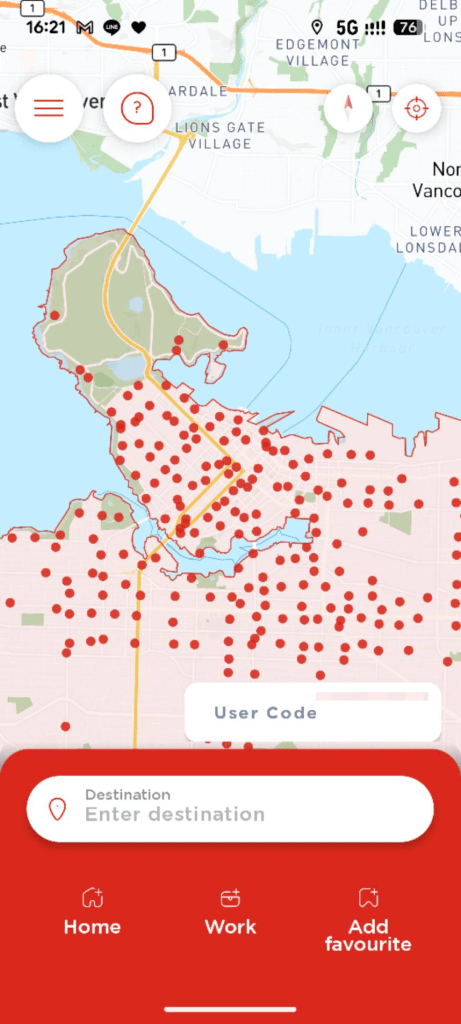 用完早餐後,我們準備出發去溫哥華水族館與史丹利公園,我們事先下載了Mobi,加入會員與綁定信用卡,APP地圖上會顯示可租借的車輛與位置。