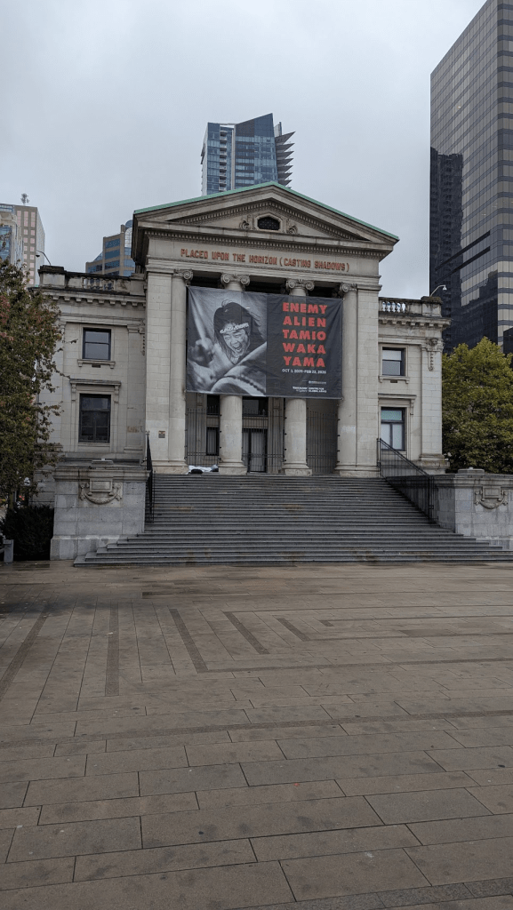 這是加拿大西部最大的美術館,門票大約新台幣18-24加幣不等,因為錢包與時間不足,就沒有進去逛,我們只是剛好經過被這個人物布掛給吸引到。