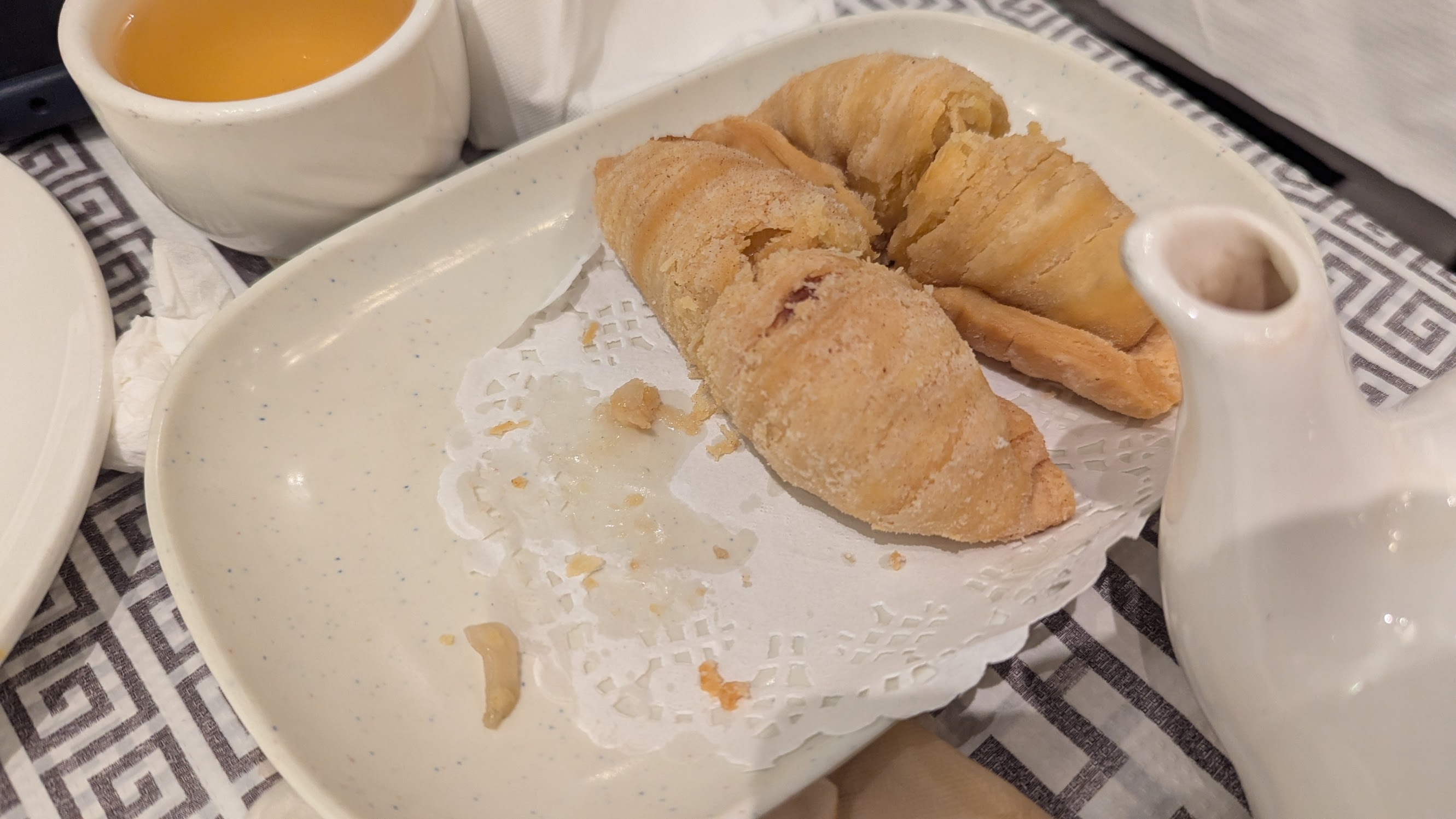 先說雲吞湯超級雷,像是煮爛的難吃水餃麵粉湯;蘿蔔絲餅是甜的菜脯不是蘿蔔絲不合胃口;燒賣、蝦餃、叉燒酥比台灣大顆約30%,口感紮實美味,站長對叉燒酥讚譽有加,把剩下五個全部都吃光;揚州炒飯粒粒分明不過油,這份應該夠四人吃,直接拿出便當盒打包一半走。我看隔壁點了一盤熱炒,東西堆得跟山一樣高,我估計那兩個人絕對是吃不完的。整體而言,這間價格並不貴,味道也不錯,如果白天一群人突然想吃港式,不乏是一個好選擇。