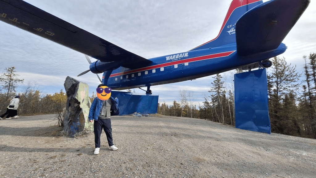 黃刀鎮市區導覽第一站-黃刀鎮大石碑、首臺降落北極圈之飛機