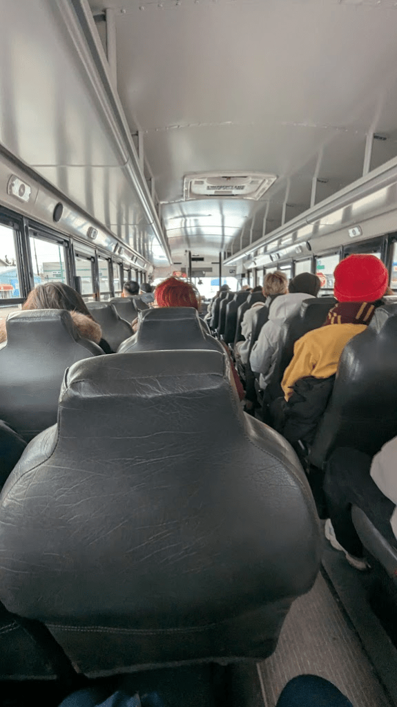 順帶一提,這是我們的巴士,很像美劇常看到的學生專車,晚上也是坐這種巴士追逐極光。窗戶會分為上下兩片,半夜追光時,常常有人打開拍照就忘記關上面,風吹進來非常寒冷。