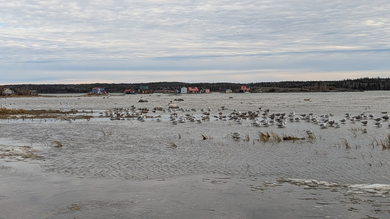 因為我們拜訪的時間是10月份來,看過去就是普通的湖畔以及居民搭建的海上房屋(免繳房地稅),有些鳥群在湖面上玩耍覓食,四處都是泥巴水,怕濕怕髒的下來這可能會很崩潰XD;我實在很難想像2個月後,什麼狗拉雪橇、冰釣、水上摩托車都可以在這裡進行。
