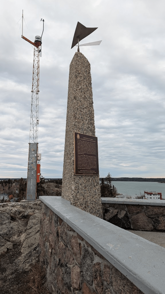 紀念碑位於黃刀鎮最高點,需要向上走約40階階梯,可以仰望整片海岸線與剛剛經過的所有建築物,比起在平地的荒涼,這邊視野相對開闊漂亮,四季、夕陽、日出、晚上的極光在這裡都有不同的風景與樣貌,可以上去google評論欣賞其他遊客的照片。這裡缺點就是風非常非常大,要小心帽子或東西被吹走,如果有下雪應該會又冷又滑,須注意行走安全。