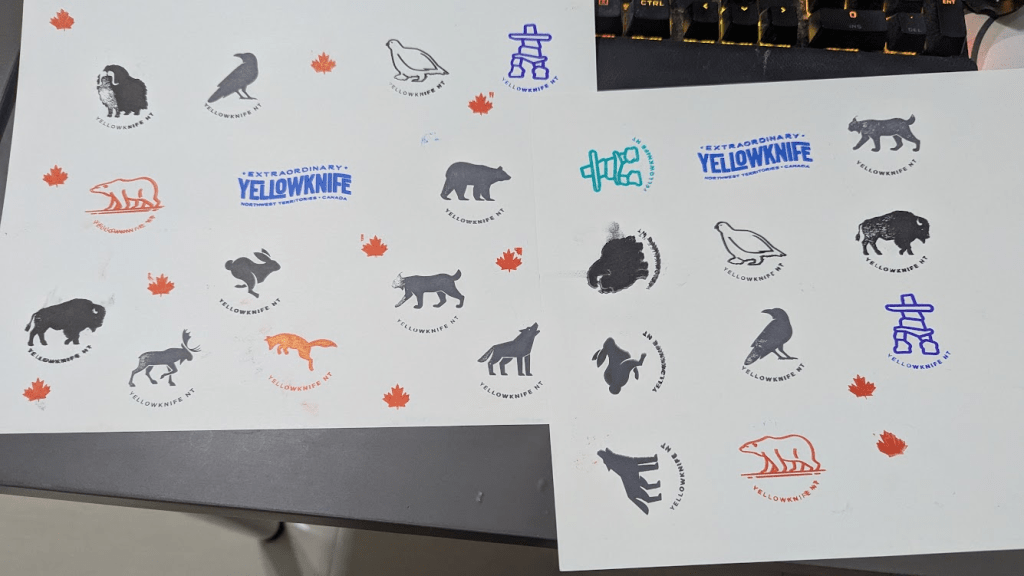 來到這的遊客會送一張明信片(別了一個徽章)以及北極圈證書(自己把名字寫上去),現場會有許多可愛動物圖案以及加拿大標誌的印章供遊客使用,如果是喜歡蒐集印章的,務必要帶印章本或旅遊本到現場蓋個夠,如果是要蓋在明信片上的,記得要留位置蓋郵戳章。