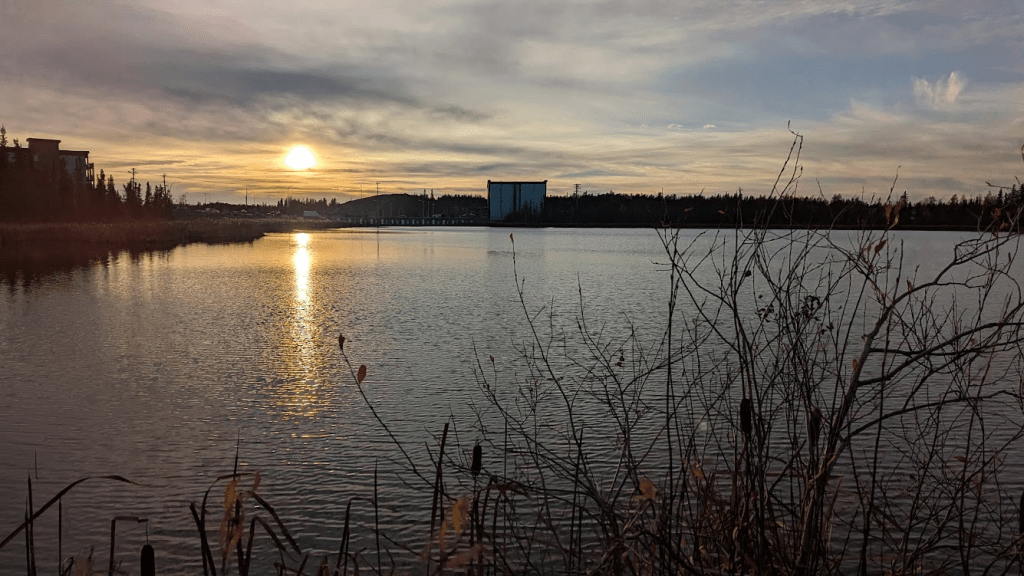 前一天非常幸運看到了極光爆發,今天是黃刀鎮的第二天,中午過後我們開始了市區導覽之旅以及第二晚的追光行程,今日天公不做美,稍微下雨外,雲層還過厚,幾乎沒看到。