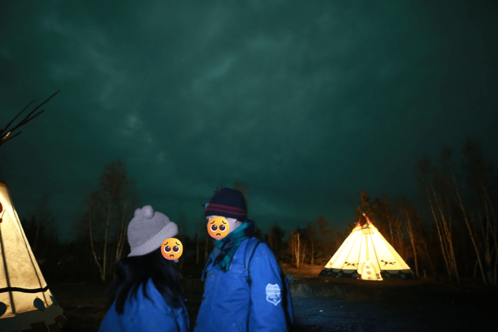 最後還是附上一些照片,讓大家對比一下我們第一天雲層0%,以及今天100%的差別,還好我們昨天有看到極光,今天心情沒有受影響。