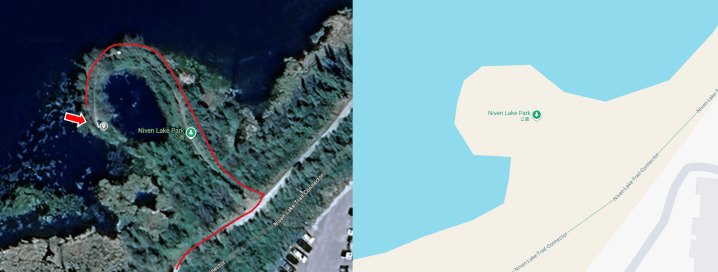 打開Google地圖以衛星模式看,可以看到這邊有個步道,末尾有長椅可以坐,可以直接點標題英文字連結看定位點。
