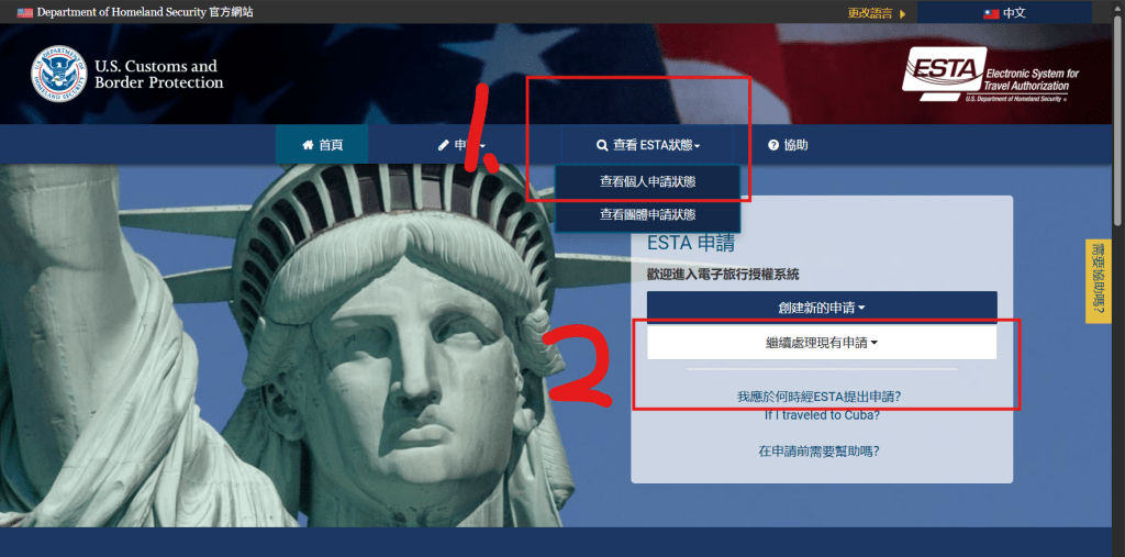 申請網站:Official ESTA Application Website, U.S. Customs and Border Protection