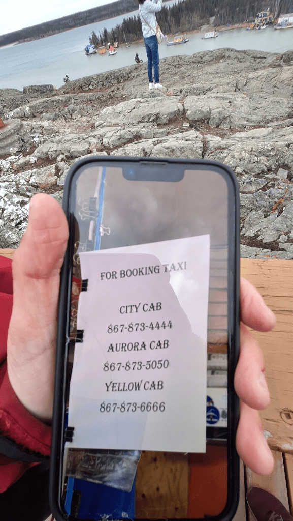 ※黃刀鎮沒有uber,如果要叫計程車需要打電話給下面這幾間,打過去說地點要去哪沒多久就會聯繫,可以刷卡也可以付現,我們從飯店搭過去含小費約13.1元(約台幣296元)。