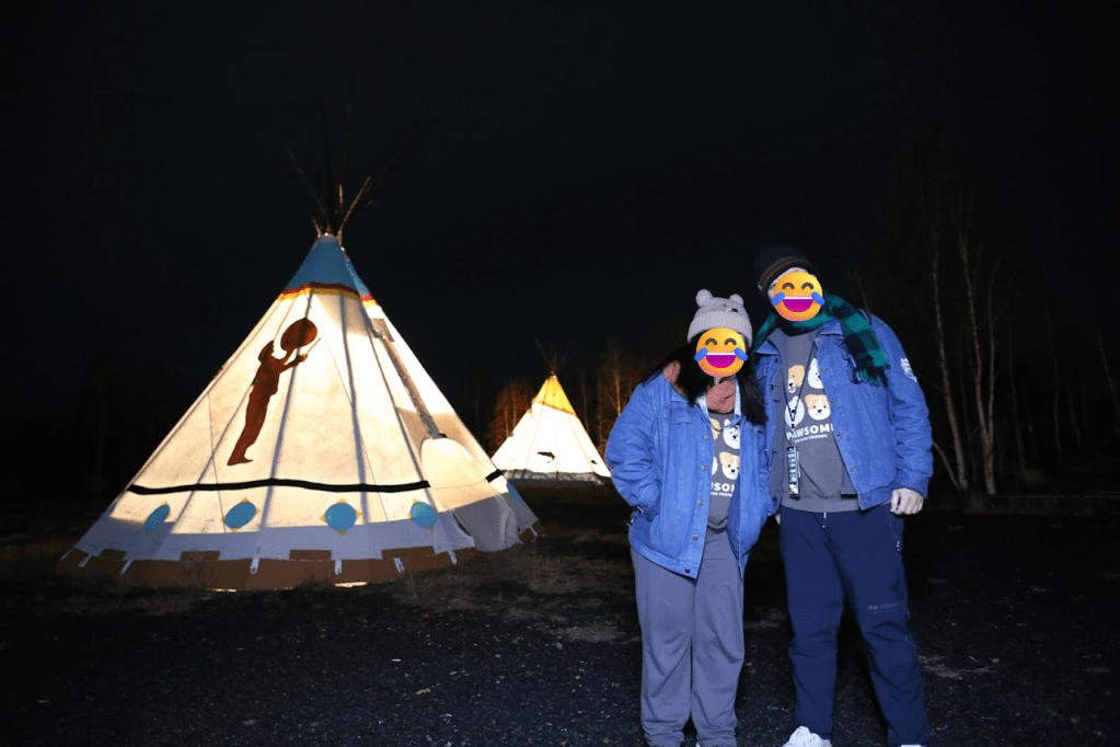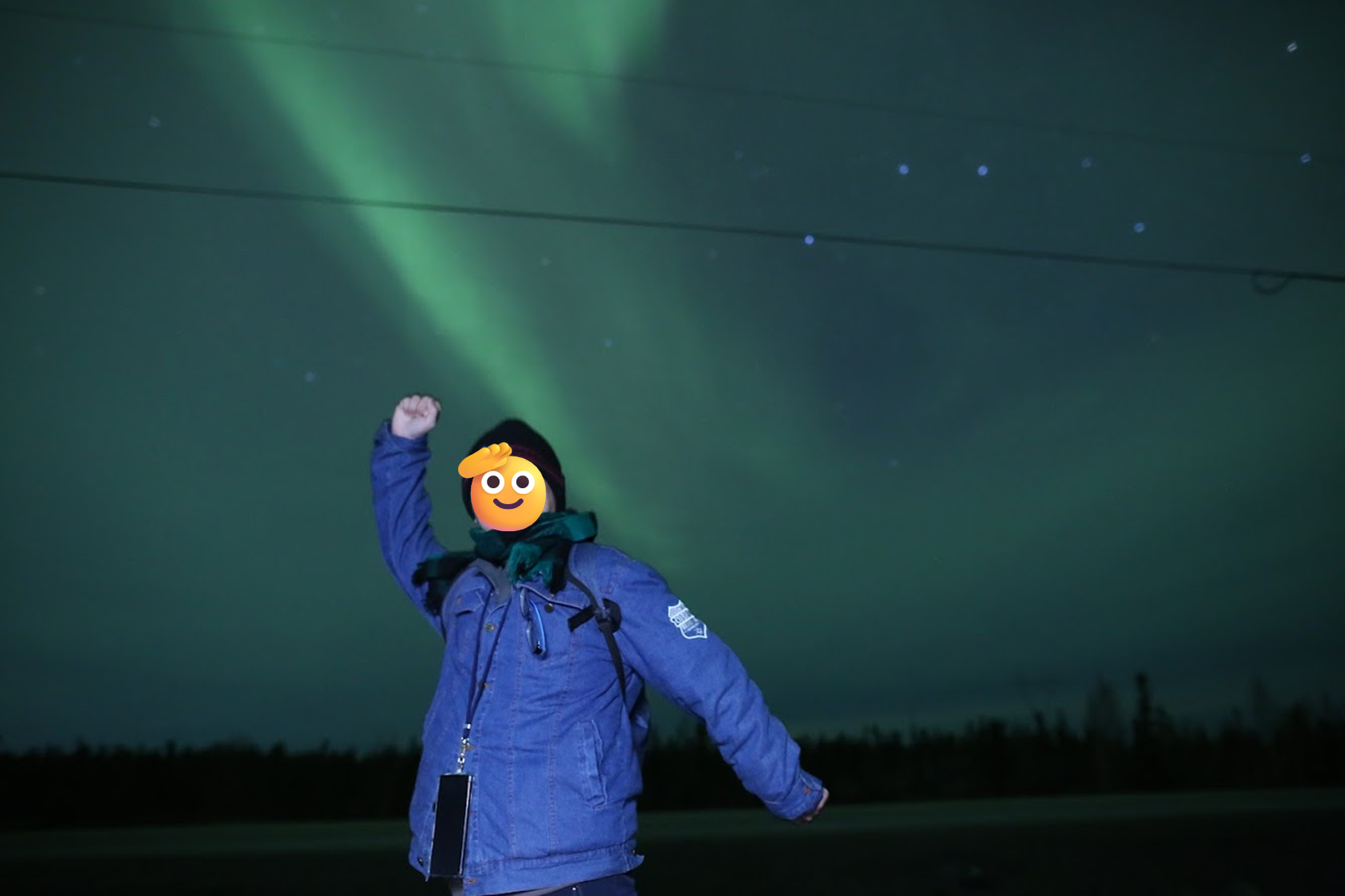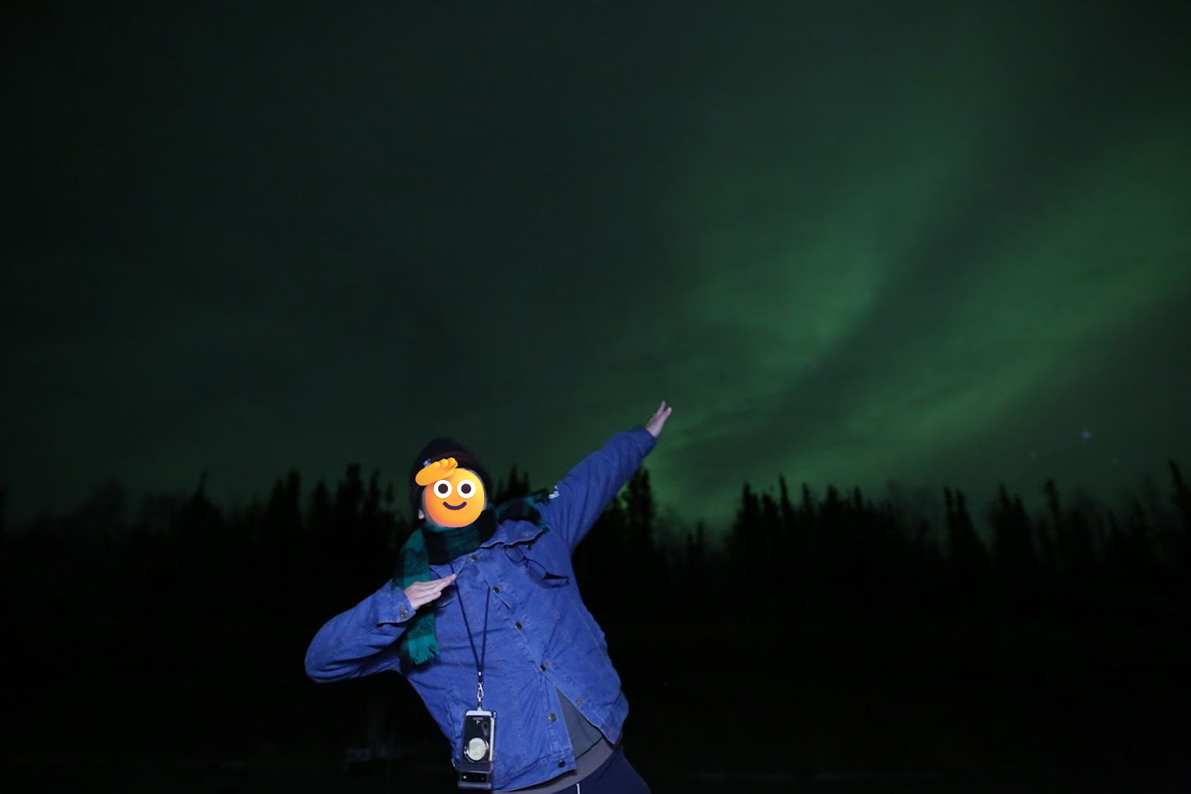 我必須大力推薦這位嚮導,她本身對攝影有興趣且是相關專業的,即便極光薄弱,仍想盡辦法要幫大家拍美照,還很會帶氣氛,為的就是希望大家不要帶著遺憾離開黃刀鎮;而且面對我們提出的疑問也都能盡量回答,還長的很面熟,讓人有親近感。後來才知道她早上有在珍珠奶茶店打工,我們喝的芋頭牛奶是她做出來的,難怪似曾相識,她還浮誇式跟我們敬禮說以後會好好攪散,超級好笑和可愛!