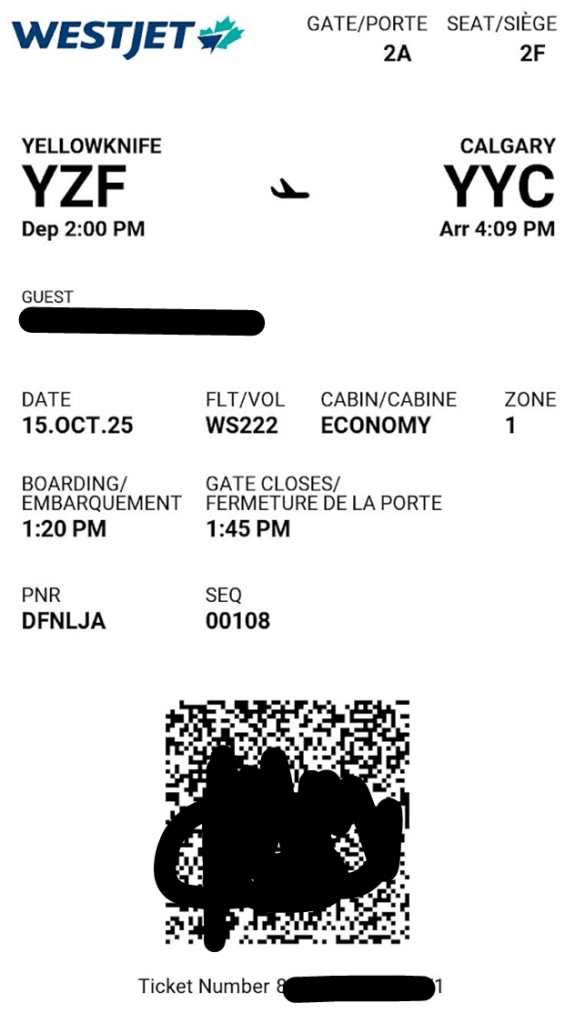 黃刀鎮機場的登機閘門只有兩個,大廳也非常陽春。我們當天有點緊繃,現場航班資訊很混亂,已過了表訂PM1:20登機時間,卻沒有聽到公告,很怕錯過了。大概再過三分鐘終於看到西捷航空藍黑配色的地勤出現後,上前詢問並確認了登機將晚15-20分鐘,這才稍稍鬆口氣。
