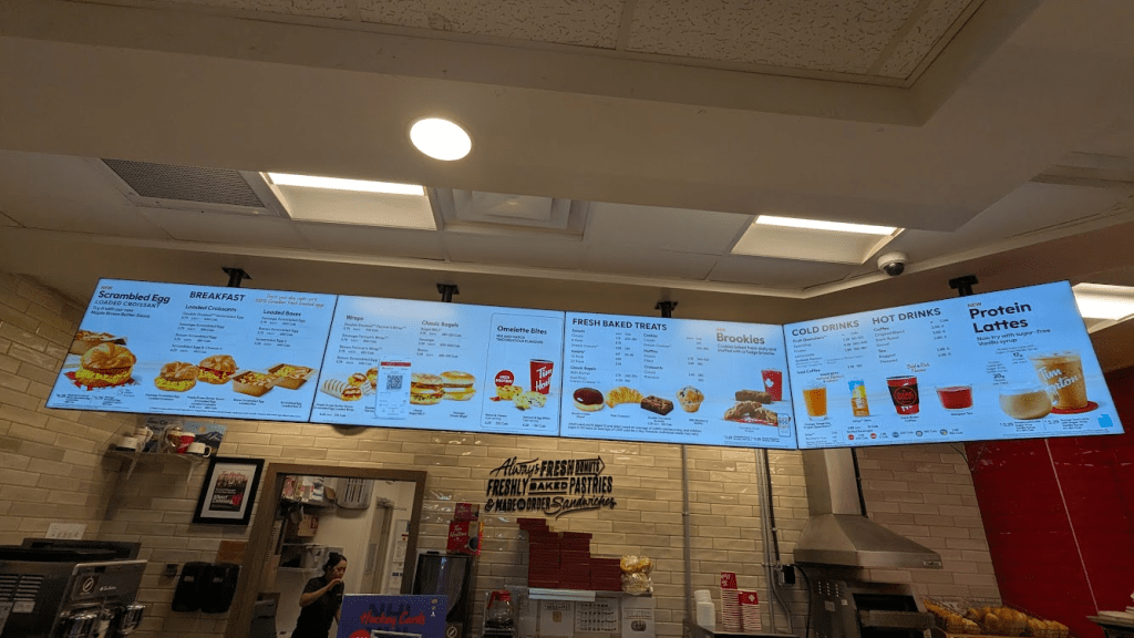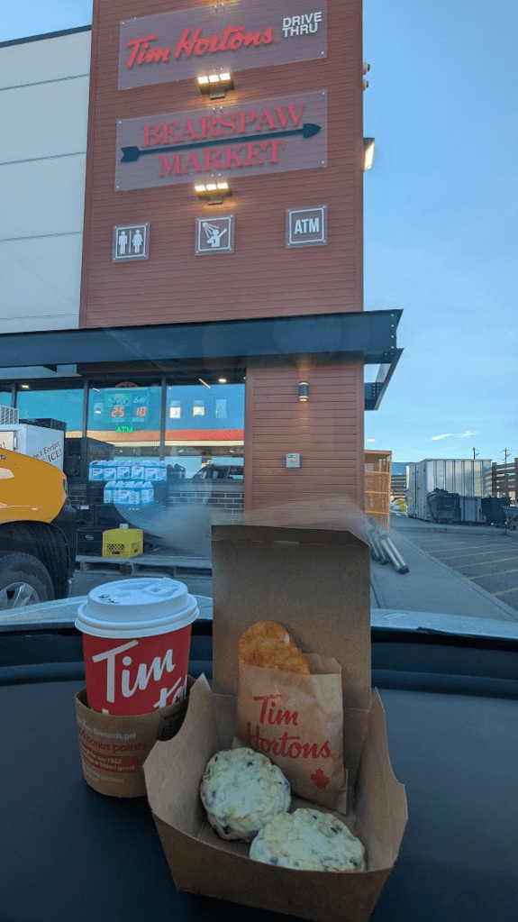 因為很想尿尿,碰巧在高速公路旁遇到一個休息站,地圖上看到有加拿大國民咖啡店Tim Horton。這間創立者為一個叫做Tim Horton的冰上曲棍球選手,成立超過半世紀,在加拿大擁有許多分店,後來似乎被漢堡王併購。價格與其他餐廳相比確實便宜又快速,定位大概就像是我們台灣的美而美、美芝城的感覺。