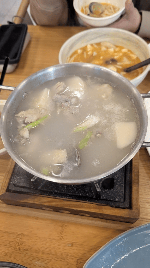 竹筍蛤蜊雞湯原本以為會是一小碗,結果店員拿了酒精燈爐出來,又是一大鍋,料算多且調味很台。