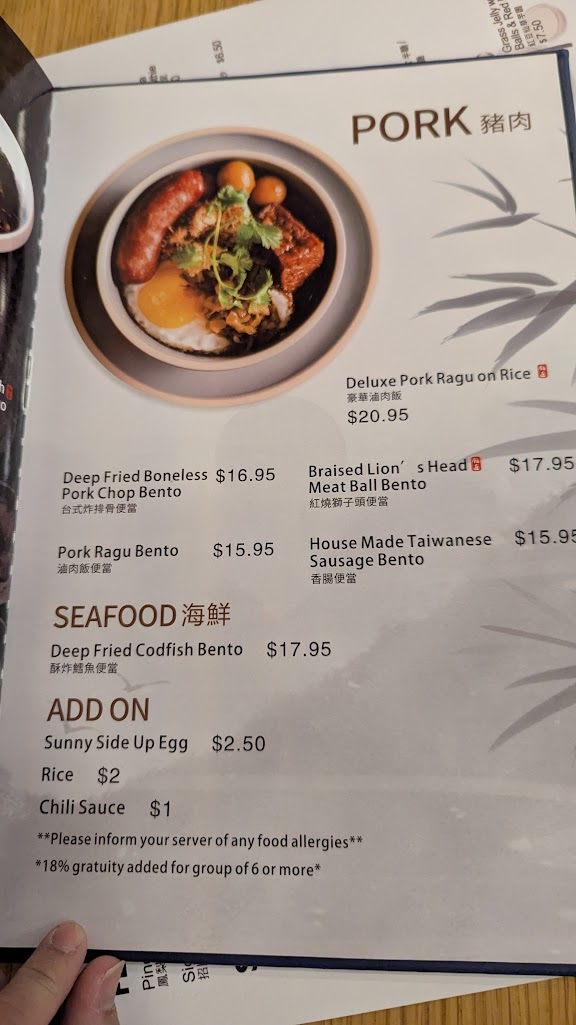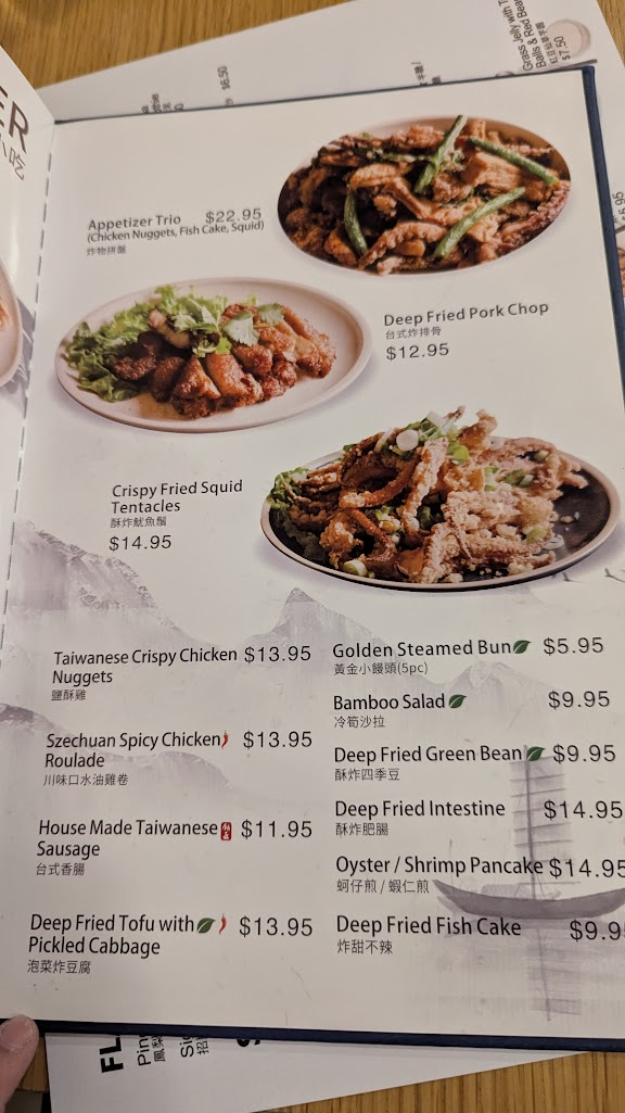 原本想去飯店隔壁的皇朝海鮮酒樓吃港點,結果遇到人家婚宴包場被迫更改行程,因為外面雨下很大,就隨意搜尋附近餐點,剛好看到這間台灣餐廳,旅行已到中後段,索性前往去試看看。店內燈光明亮,桌與桌間距不大略為擁擠,但容納20人應該不是問題,員工可以講中文,我一開始還一直this one,再次覺得很尬XDDDD。