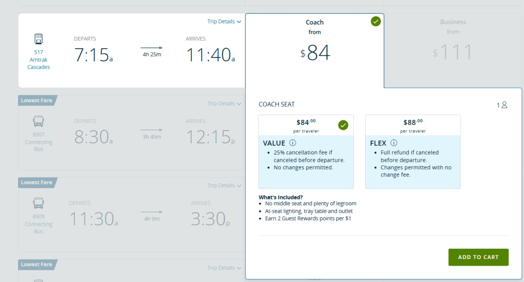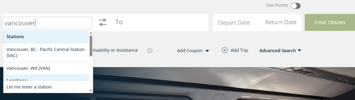 我們這次旅行是從溫哥華入境美國,西雅圖下車,訂票時發現,美國境內竟然也有另外一站也叫Vancouver,因此選擇地點是一定要看清楚是Vancouver, BC. Pacific Central Station這站,不要選到其他的。