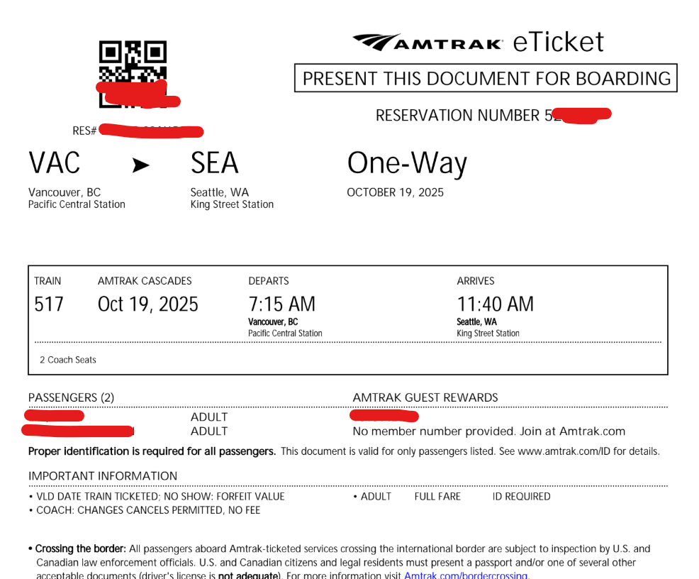搭乘Amtrak火車從溫哥華到西雅圖的詳細流程
