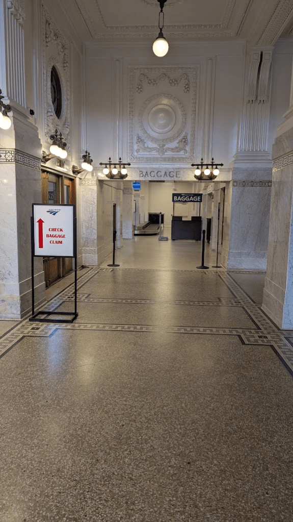 出站時完全沒有在被檢查票根,直接下車即可。人跟隨身行李也完全不需要過任何安檢設施,感覺是過了邊境後直接跳車也沒人管的那種(造謠?)。下車後看一下指示牌直接進站,接著就走到行李轉盤處等行李。