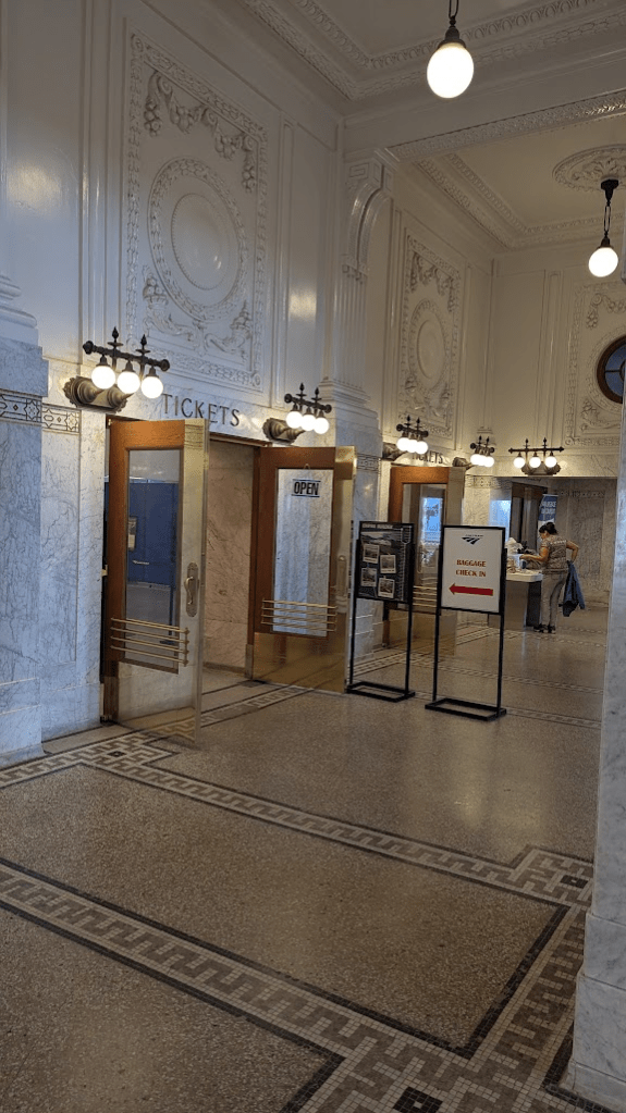 西雅圖中央車站是一座1906年落成的古蹟車站,曾於2013年重建完成,因站內格局較舊,導致動線稍微不佳,但時間足夠的話,站內站外都很值得拍照留念。出站後走路10分鐘就到西雅圖水手隊球場!剛好我們去的時候可朝聖剛進名人堂(2025)的鈴木一朗海報跟周邊商品。