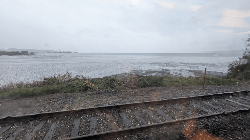 鐵路貼著海岸線搭建,部分路段浪花都快打到鐵道上來,雖然我們遇到下雨天灰濛濛一片,但經過的港口、建築、橋、森林等風景還是挺不錯的。整趟搭乘加上前期等候時間約五個多小時,出發時間較不友善,睡不飽容易精神倦怠,但如果不趕時間的人,可以來體驗看看。