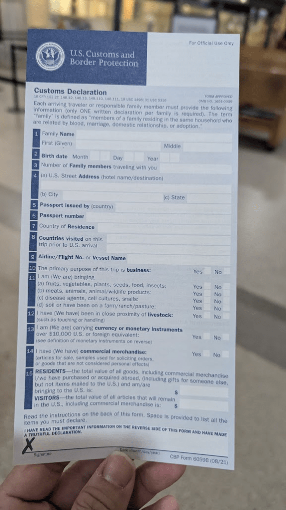 即便已經申請好了ESTA跟I94,現場也需要再填一次調查單,以加速海關處理,身處異鄉就乖乖填寫完畢即可。